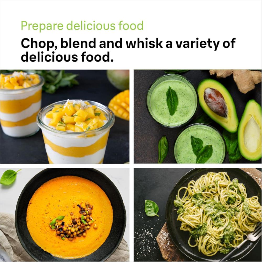 قوة وأداء فائق: بفضل محركه الذي تبلغ قوته 1000 واط، يمكنك خلط، هرس، وخفق مختلف المكونات بسرعة وكفاءة عالية.