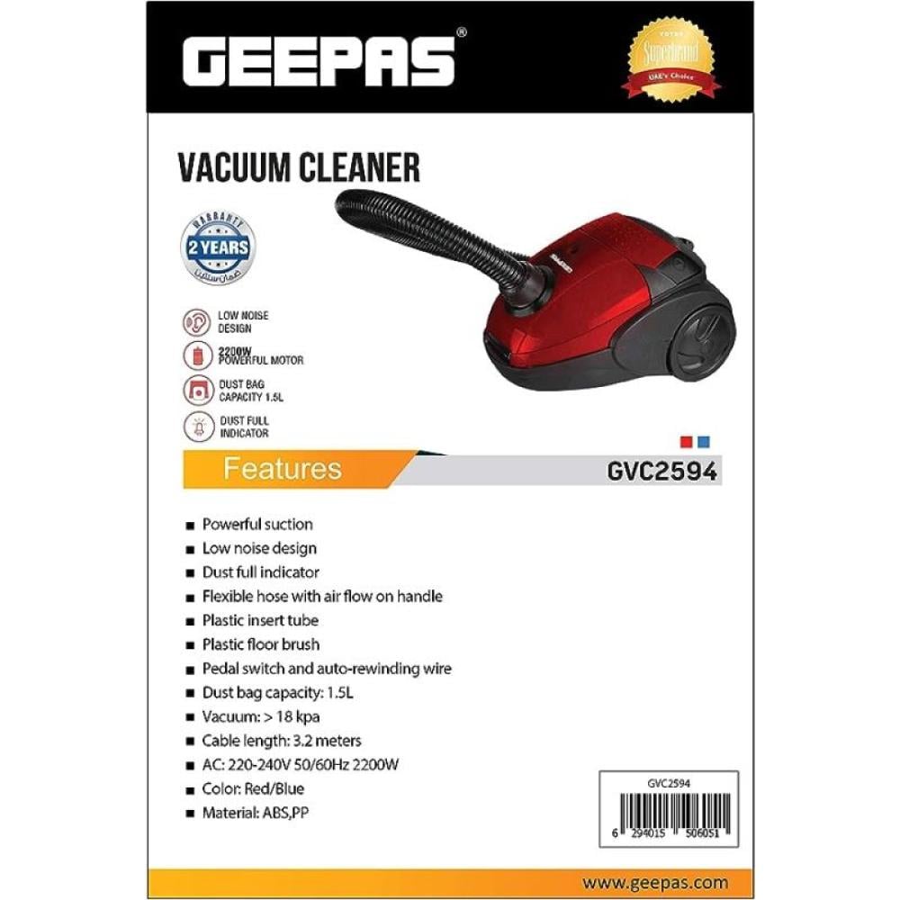 احصل على تجربة تنظيف مريحة وفعالة مع مكنسة جيباس المزودة بمحرك قوي بقوة 2200 واط، مما يوفر قوة شفط عالية تلتقط الغبار والجسيمات الصغيرة بكل سهولة.