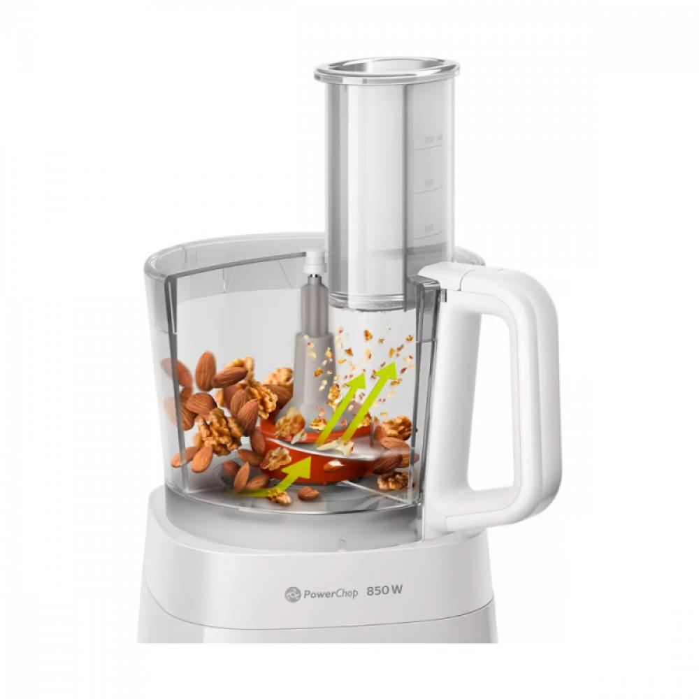 يوفر المحرك القوي بقوة 850 واط قدرة عالية لتحضير مجموعة متنوعة من المكونات مثل عجينة الخبز، الخضار القاسية، حبوب القهوة، الجبن، والشوكولاتة. بالإضافة إلى ذلك، يقوم بشحذ المكونات وتقطيعها إلى شرائح بسهولة تامة.