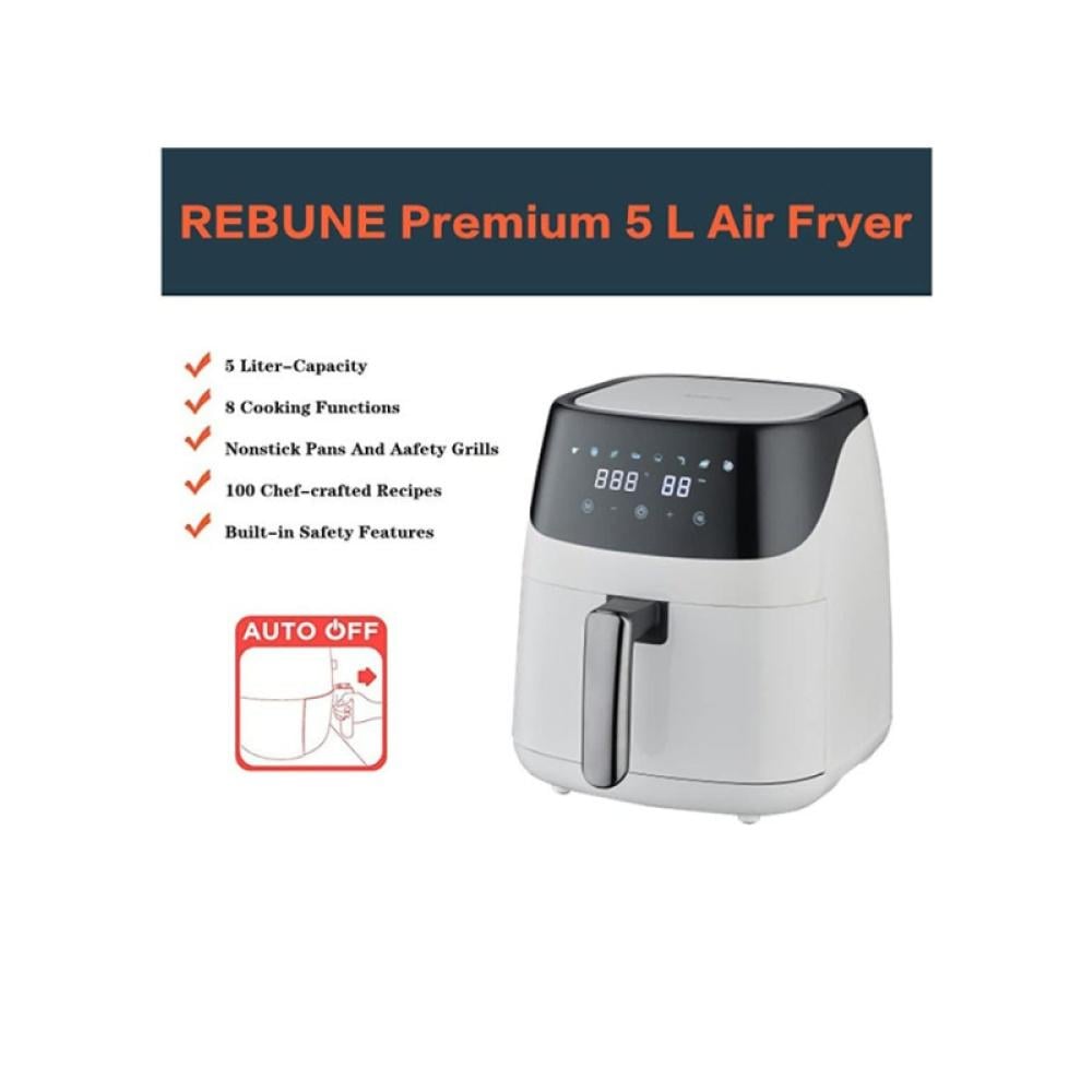 - سعة كبيرة 5 لتر: قلاية هوائية ريبون لطهي وجبات متعددة أو عائلية دفعة واحدة، دون الحاجة لتكرار الطهي.