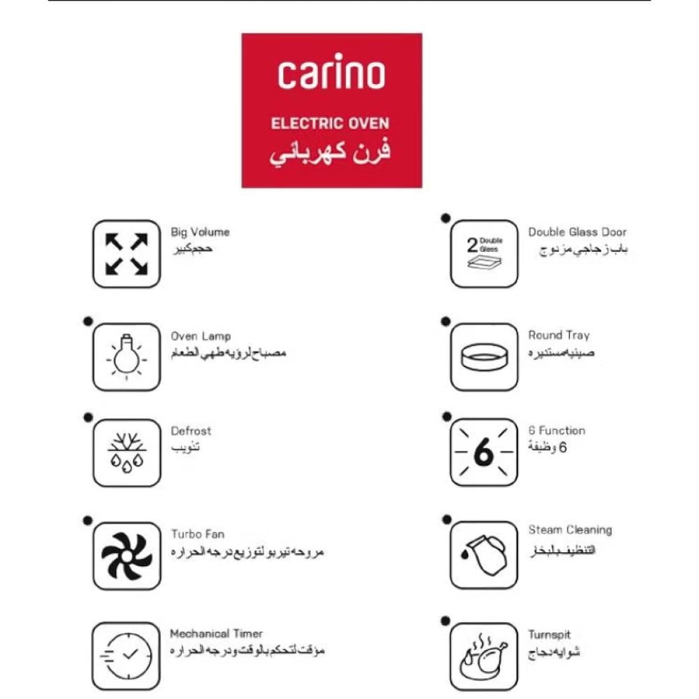 - قوة 1300 واط: توفر لك قوة فرن الكهرباء كارينو طهيًا سريعًا وكفاءة عالية مع الحفاظ على جودة الطعام.