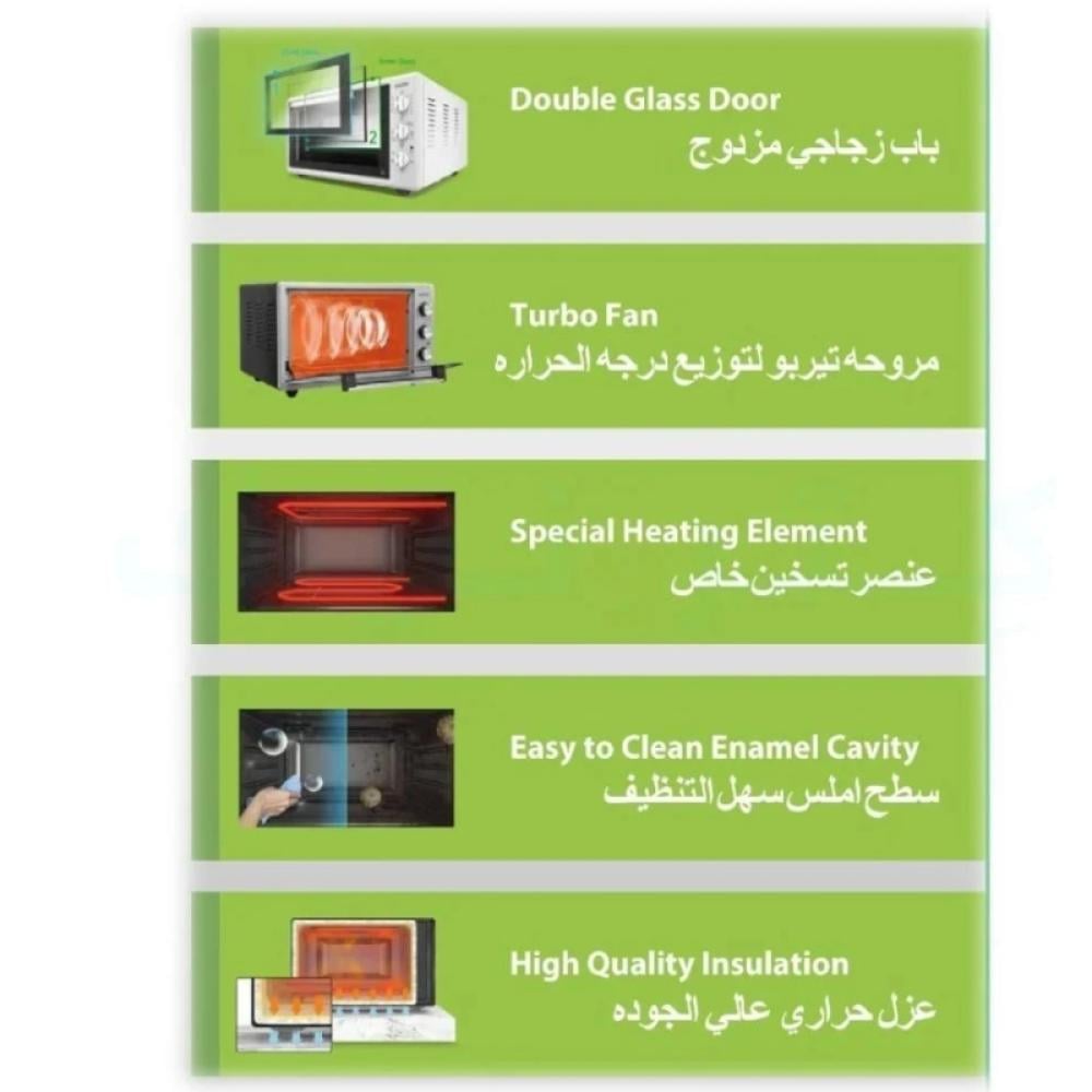 - إكسسوارات مرفقة: يحتوي الفرن الكهربائي على صينية خبز ورف شوي، مما يساعد في تحضير الأطعمة المتنوعة بطريقة سهلة ومريحة.