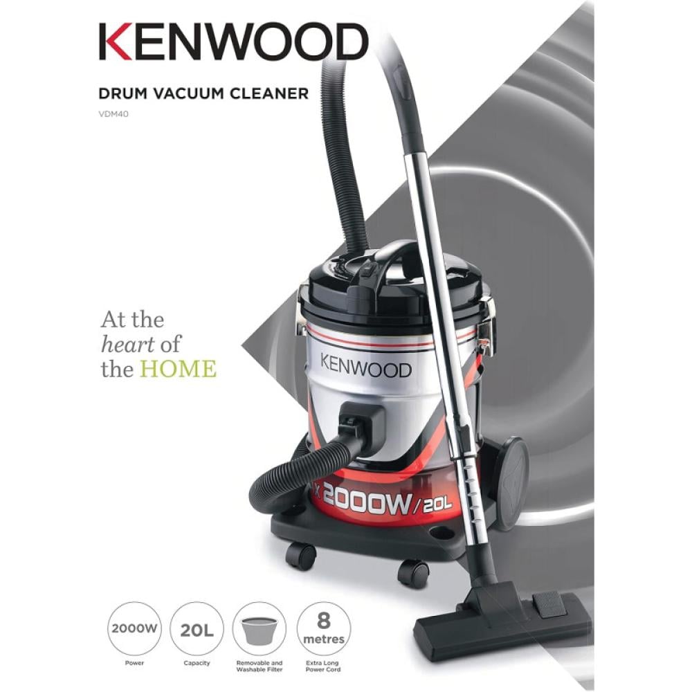 كينوود مكنسة كهربائية بسعة 20 لتر وقوة 2000 واط، مع كابل بطول 8 أمتار وفلتر قابل للإزالة والغسل - متعدد الألوان - VDM40.000BR