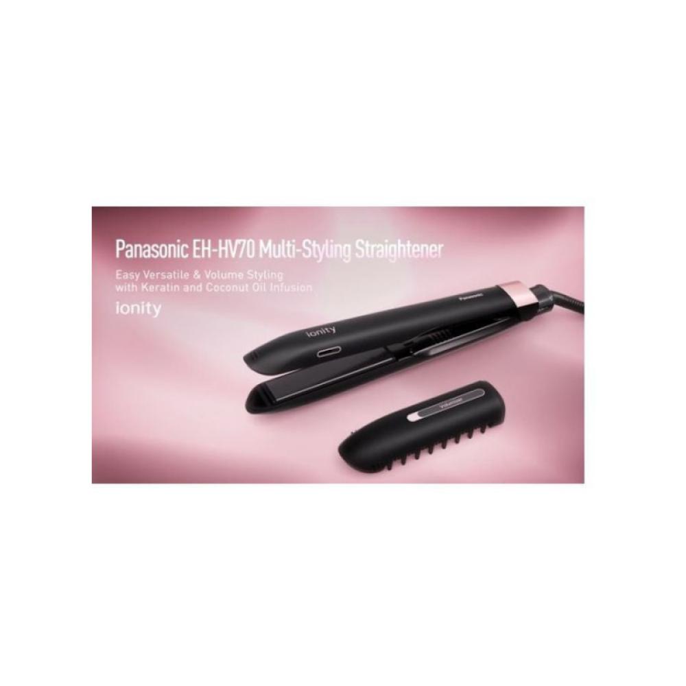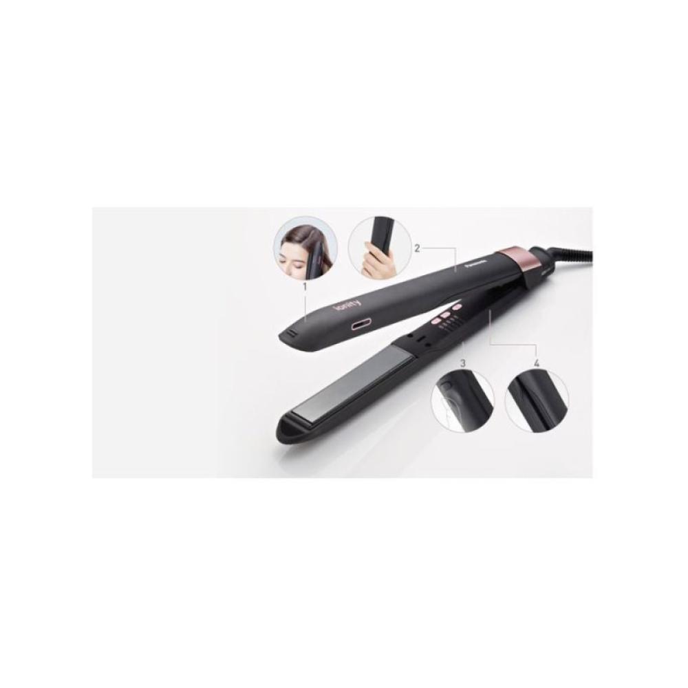 باناسونيك جهاز تلميس الشعر الأيوني - 5 إعدادات للحرارة - لوحة انزلاق ناعمة متقدمة - أسود ووردي - EH-HV70-K685