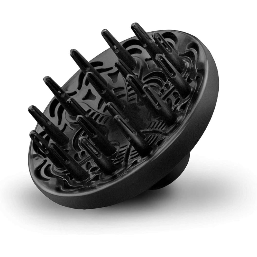 ملحقات متعددة: يأتي المجفف مع فوهة تركيز لتوجيه تدفق الهواء بدقة وتصفيف سهل، بالإضافة إلى موزع هواء لتعزيز تموجات الشعر الطبيعية وإضافة حجم.