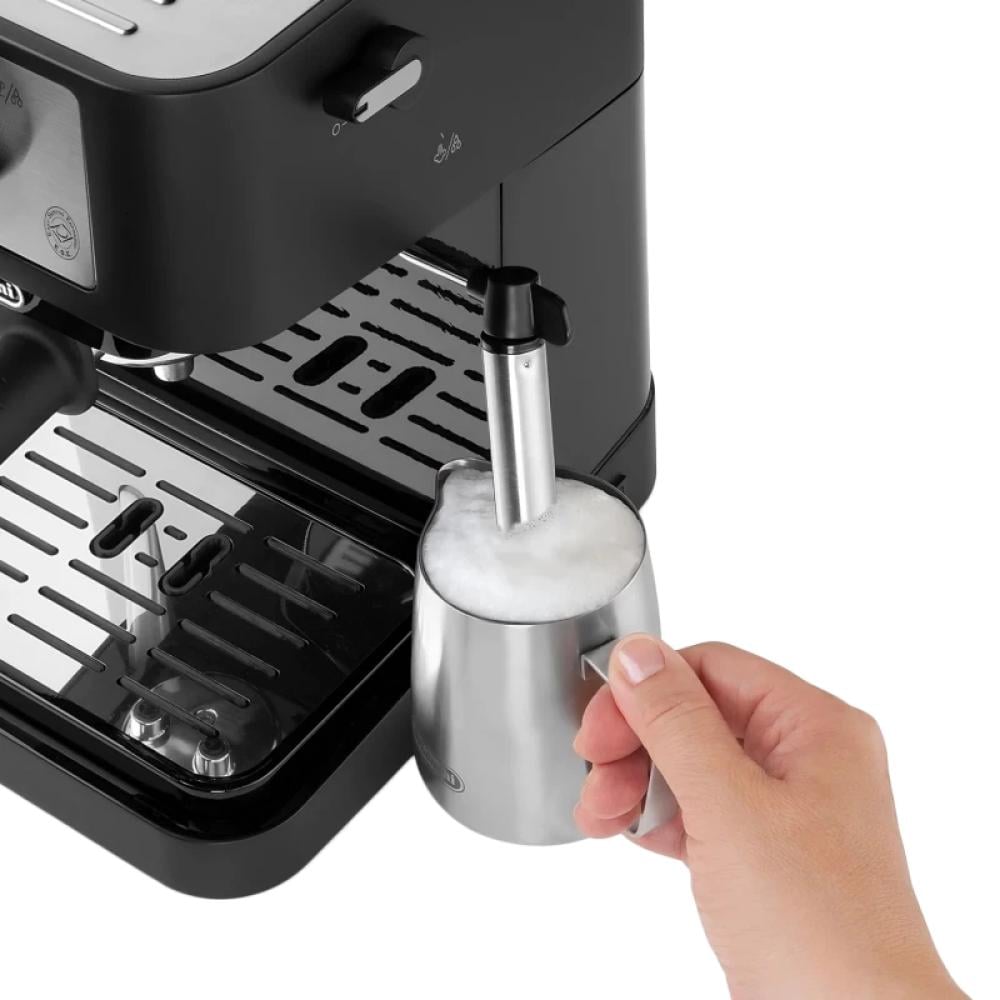 نظام إزباد الحليب: مزودة بنظام كابتشينو من الستانلس ستيل، يتيح لك مزج البخار والحليب يدويًا لتحضير رغوة مثالية لمشروباتك المفضلة.