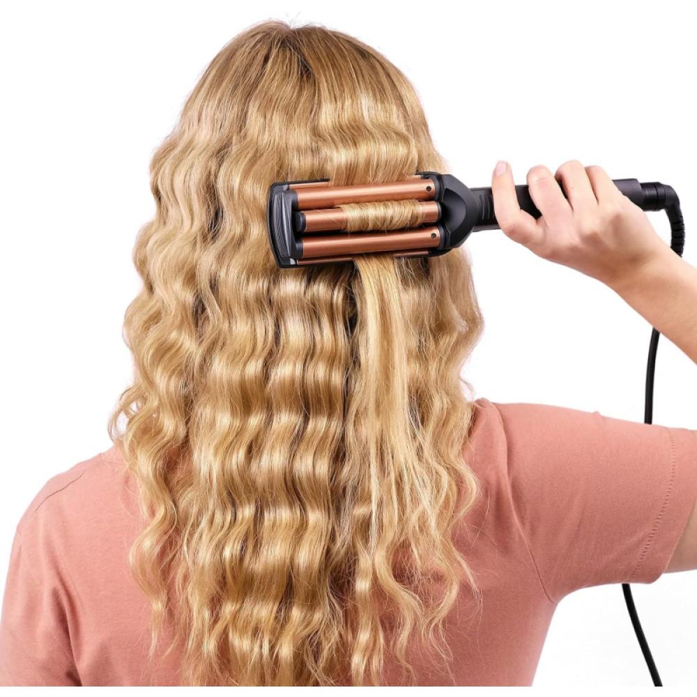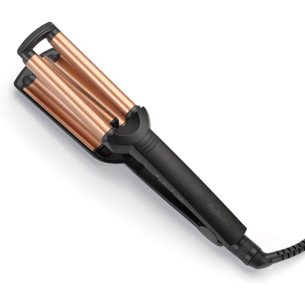 تموجات مثالية: بفضل قضبان السيراميك الكبيرة المصنوعة من التورمالين، تضمن لك هذه المكواة إنشاء تموجات عميقة وجميلة، مع شعر خالٍ من الهيشان ولامع.