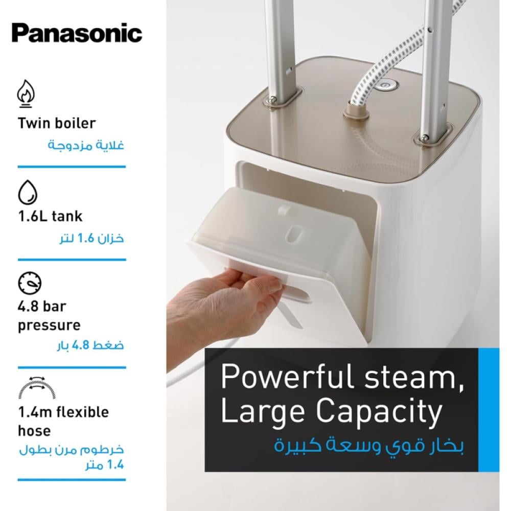 باناسونيك باناسونيك مكواة بخار عمودية للملابس - غلاية مزدوجة قابلة للتعديل بزاوية حرة - 2400 واط - 1.6 ليتر - أبيض - NI-GWF150WTH