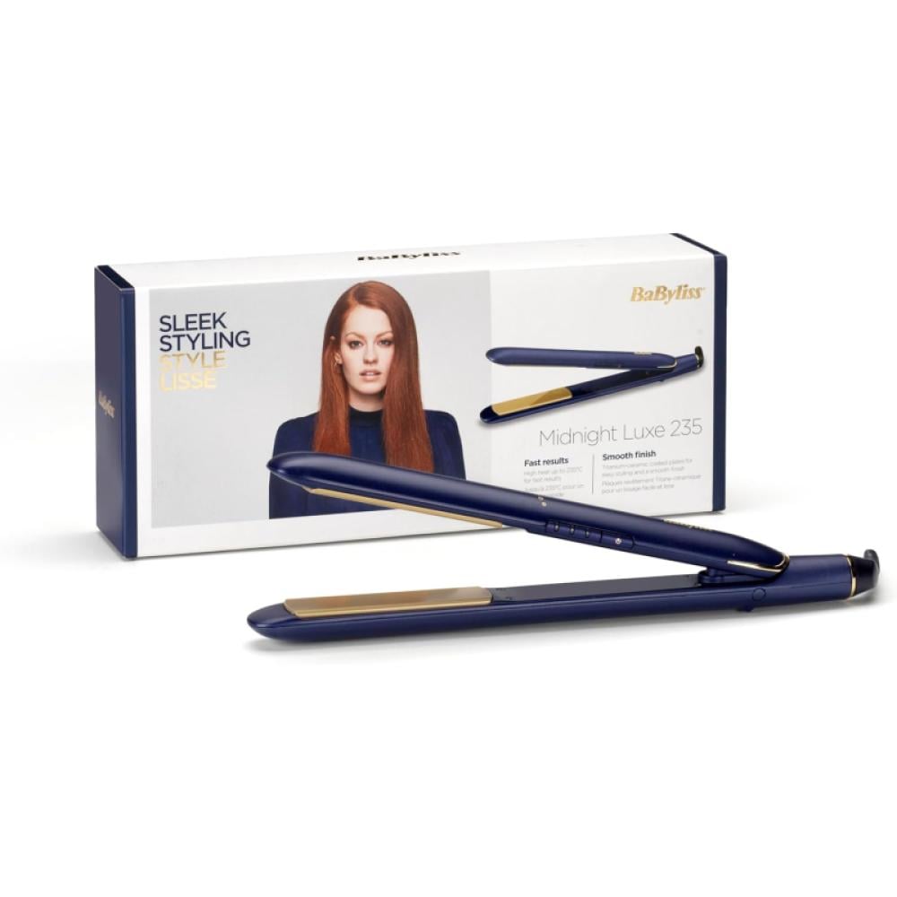 بيبي ليس Midnight Luxe 235 مكواة فرد الشعر، تصل درجة حرارتها إلى 235 درجة، 3 إعدادات حرارة، سطح من السيراميك والتايتانيوم - أزرق - 2516PSDE